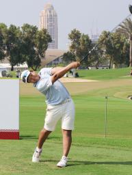 第3ラウンド、通算17アンダーで首位の長崎大星=ドバイのエミレーツGC(共同)