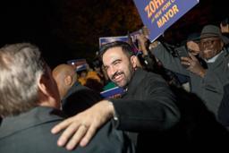 ニューヨーク市長選のマムダニ候補(中央)=3日、ニューヨーク(ゲッティ=共同)