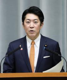 記者会見する佐藤官房副長官=4日、首相官邸