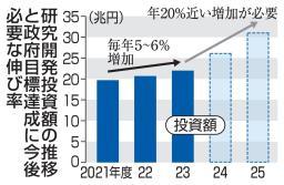 研究開発投資額の推移と政府目標達成に今後必要な伸び率