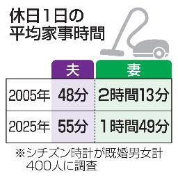 ◎家事負担共働きでも妻2倍 「いい夫婦の日」調査