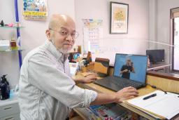 配信した自身の動画を映す森崎興蔵さん=19日、静岡市