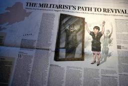 台湾有事に関する高市首相の国会答弁を非難し、「軍国主義者、復活への道」と題する記事を掲載した24日付の中国国営英字紙チャイナ・デーリー=24日、北京(共同)
