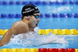 男子400メートル個人メドレー決勝 平泳ぎで力泳する西川我咲=東京アクアティクスセンター