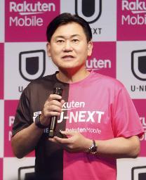 記者会見する楽天モバイルの三木谷浩史会長=6月、東京都渋谷区