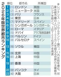 ◎都市ランキング、東京が世界4位 大阪23位、名古屋と札幌は脱落