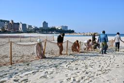 ◎白良浜、砂ネットで冬支度 温泉街の飛散防止、和歌山