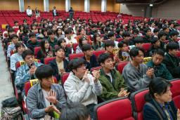歓迎式に参加した、静岡県立静岡高と山形県立米沢興譲館高の生徒ら=3日、台北市(共同)