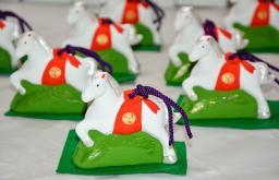 来年の干支「午」にちなんだウマの土鈴=4日、大阪府羽曳野市の誉田八幡宮