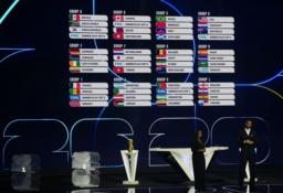 サッカーW杯北中米3カ国大会の1次リーグの組み合わせ。日本はF組に入った=5日、米ワシントン(共同)