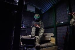 ウクライナ・ドニプロペトロウスク州の塹壕(ざんごう)で、無人機を操縦する兵士=9月(共同)
