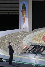 11月、お別れの会で弔辞を述べる王貞治さん=東京ドーム