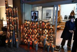 中村哲医師の追悼行事で明かりがともされた竹灯籠=6日夕、福岡県大牟田市