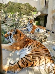 展示室で過ごす臥桜(手前)と未桜=2023年11月(長野県の須坂市動物園提供)