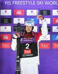 モーグルW杯開幕戦の男子で優勝した堀島行真=ルカ(共同)