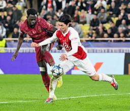 ガラタサライ戦で競り合うモナコの南野(右)=モナコ(共同)