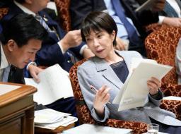 参院予算委で木原官房長官(左)と話す高市首相=12日午後