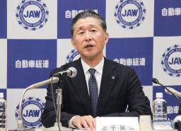 2026年春闘の要求目安について説明する自動車総連の金子晃浩会長=12日午後、東京都港区