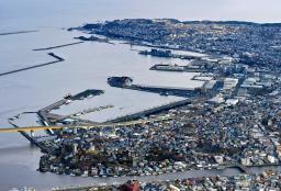 地震で強い揺れを観測した青森県八戸市の沿岸部=9日(共同通信社機から)