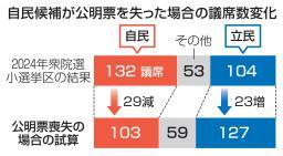 自民候補が公明票を失った場合の議席数変化