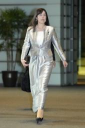皇居での認証式を前に首相官邸に入る小野田紀美経済安保相=21日午後6時35分