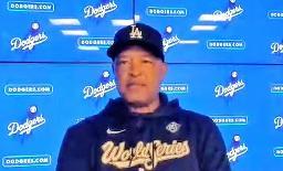 オンラインで取材に応じるドジャースのロバーツ監督=21日(共同)