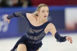 女子フリー 演技するアンバー・グレン=重慶(共同)