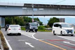 幼稚園バスとトラックが衝突する事故があった交差点=6日午前11時46分、岐阜県笠松町米野