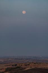 パレスチナ自治区ガザ北部の上空で観測された「スーパームーン」=6日、イスラエル南部スデロトから撮影(共同)