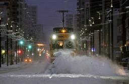 ◎冬告げるササラ電車初出動、札幌 路面電車の軌道除雪