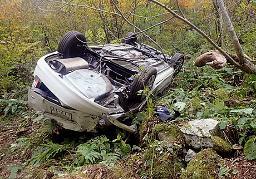 ◎車が崖下転落、2人死亡 「ホワイトロード」の駐車場