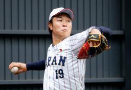 ◎高橋宏、精力的に投球練習 日本代表、合宿5日目