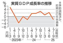 ◎GDP年率1・8%減 7〜9月期、米関税響く