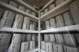 原爆供養塔の地下納骨室に安置されている骨つぼ=7月、広島市中区の平和記念公園