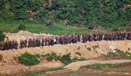 非武装地帯(DMZ)での作業に投入された北朝鮮の兵士(韓国軍提供・共同)