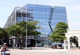 「プリンス・ホールディング・グループ」が本社としていたプノンペンのビル=14日(共同)