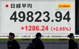◎東証大幅反発、終値1286円高 ハイテク株中心に買い注文