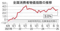 ◎10月全国物価3・0%上昇 伸び率2カ月連続拡大