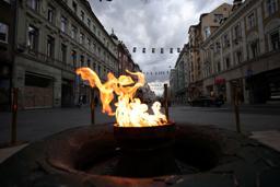 ボスニア・ヘルツェゴビナの首都サラエボに設置されている炎のモニュメント=20日(ロイター=共同)