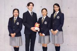 フィギュアスケート全日本ジュニア選手権の開会式を終えた(左から)和田薫子、中田璃士、島田麻央、櫛田育良=22日、東京辰巳アイスアリーナ