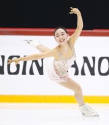 女子フリー 演技する松生理乃=ヘルシンキ(共同)