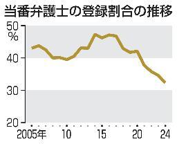 ◎「当番弁護士」の登録、過去最低 24年は3割、制度危ぶむ声