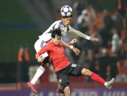 町田―江原 後半、ヘディングで競り合う町田・望月(上)=春川(共同)