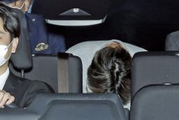 送検される林欣海容疑者=29日午後0時3分、警視庁牛込署