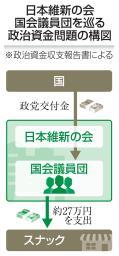 日本維新の会国会議員団を巡る政治資金問題の構図