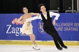 アイスダンスフリー 演技する櫛田育良(左)、島田高志郎組=ザグレブ(共同)
