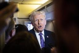 大統領専用機で記者団の取材に応じるトランプ米大統領=11月30日(ゲッティ=共同)