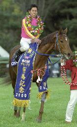 2000年、競馬の第45回有馬記念を制したテイエムオペラオーと和田竜二騎手=中山競馬場