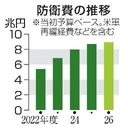 ◎防衛費、過去最大の9兆円規模に 26年度予算案、政府調整