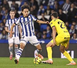 ジローナ戦の前半、攻め込むレアル・ソシエダードの久保(左)=サンセバスチャン(共同)